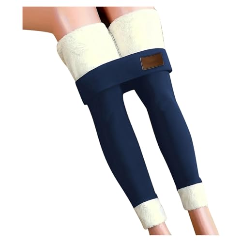 Osheoiso Femme Legging Doublé en Polaire Chaud Vintage Collants Leggings Épais en Laine Thermique Hiver Doublure Velours Leggings Pantalon Élastiques Taille Haute A Bleu Foncé XL