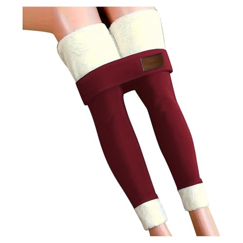 Osheoiso Femme Legging Doublé en Polaire Chaud Vintage Collants Leggings Épais en Laine Thermique Hiver Doublure Velours Leggings Pantalon Élastiques Taille Haute A Vin Rouge XL