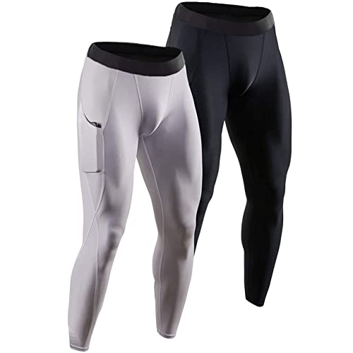 AMZSPORT Pantalon de Compression pour Hommes Cool Collants Leggings Base pour Toutes Les Saisons gris et noir Taille S
