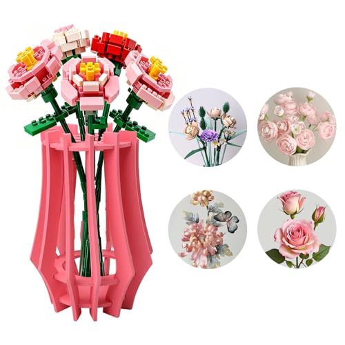 Vase pour Fleurs Lego, Bouquet Puzzle en Bois Vase 3D Décoration d'Intérieur, Support pour Roses, Orchidées, Plantes, Cadeau pour Les Amateurs de Fleurs
