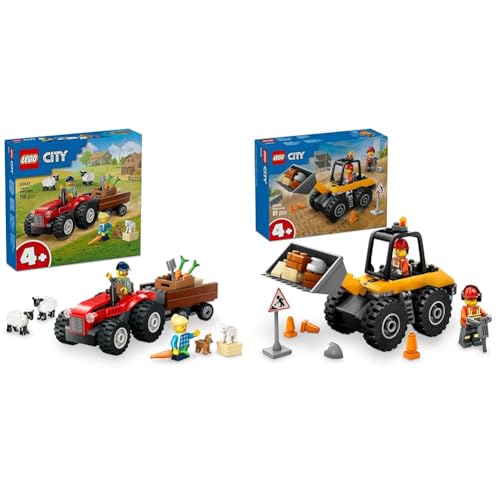 LEGO City Tracteur Rouge de Ferme avec Remorque & Mouton + Chargeuse sur Pneus Jaune 4+ Ans Garçons & Filles - Maternelle 60461 + 60450