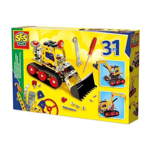 Ses Creative -Coffret de Construction métallique Creator - Véhicules de Chantier 3 en 1-Paquet de Saut-Favorise Le développement de la motricité Fine-Idée Cadeau