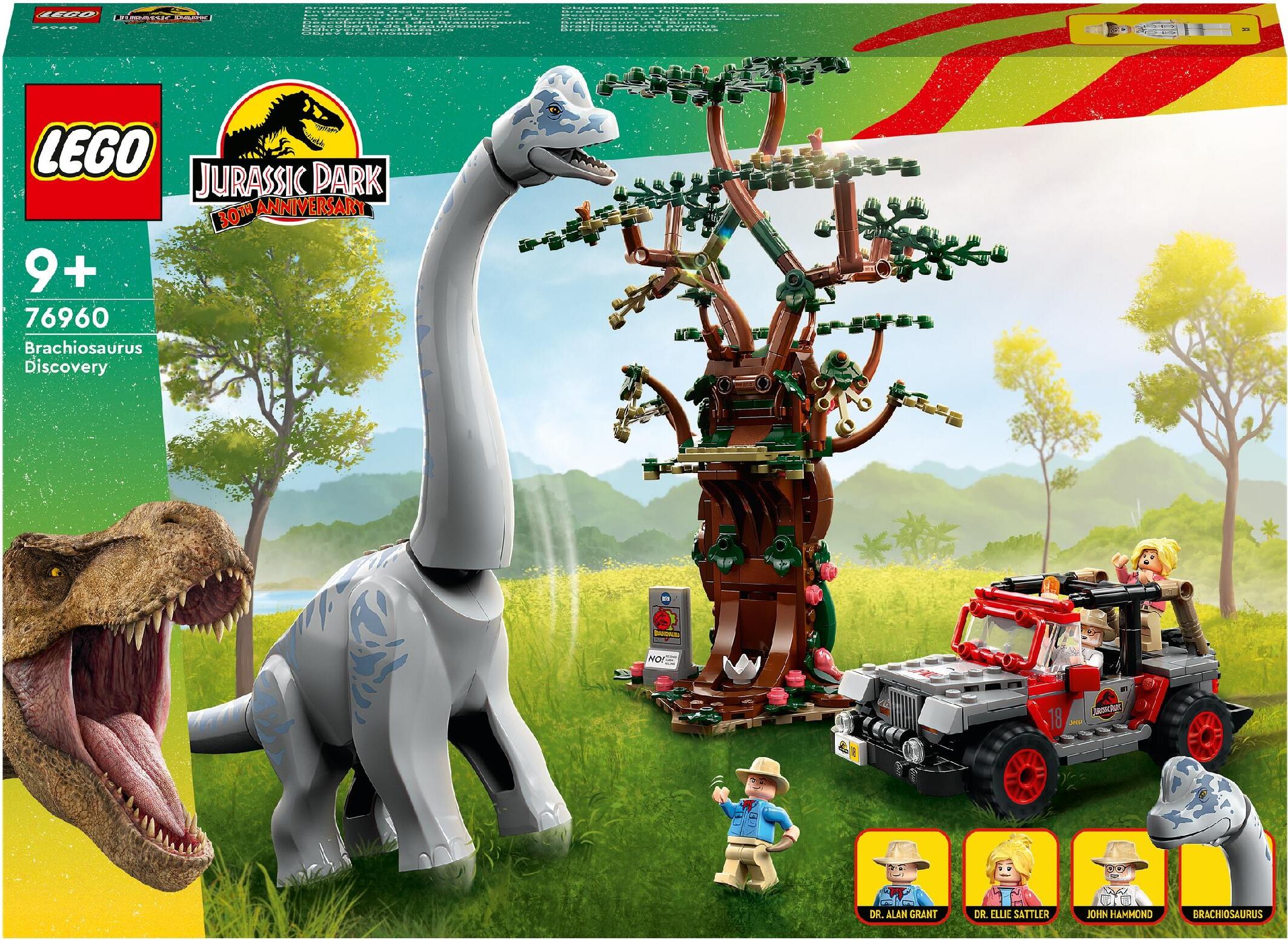 LEGO 76960 Jurassic Park Découverte du brachiosaure, jouet dinosaure avec figurine et jeep, set de collection pour le 30e anniversaire, pour garçons et filles