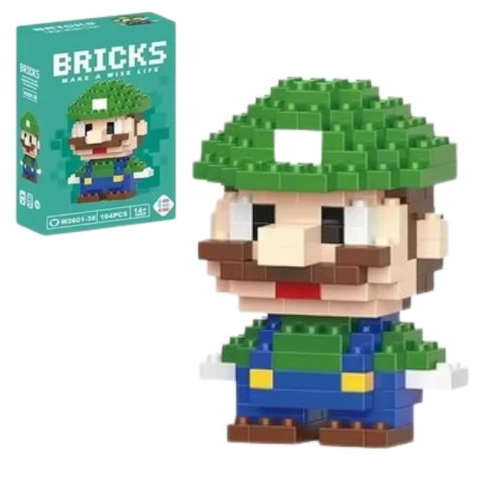 Figurine à assembler Luigi – Mario Bros 62 cm – 164 pièces Micro Bricks - Jeu de construction compatible Lego - GAVI STORE