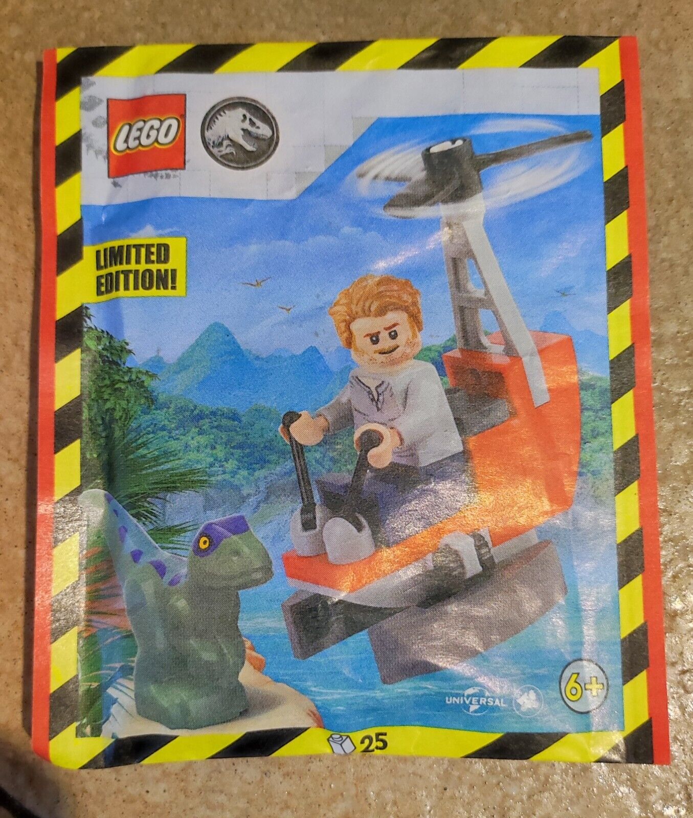 POLYBAG LEGO FIGURINE JURASSIC WORLD FOIL 122403 OWEN ET HELICOPTER + RAPTOR