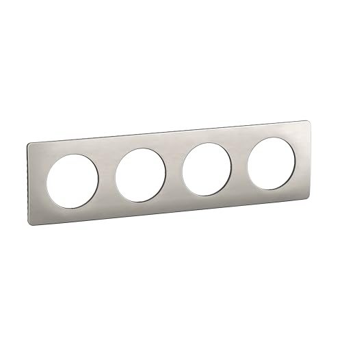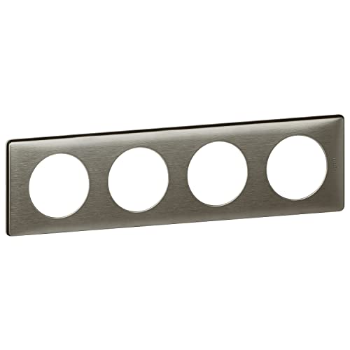 LEGRAND - Plaque Céliane - Plaque de Finition pour Prises et Interrupteurs Céliane - 4 postes - Acier satiné