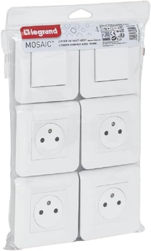 Legrand-Lot de 4 prises de courant 2P+T 16A + 2 va-et-vient 10A complet Mosaic - Blanc