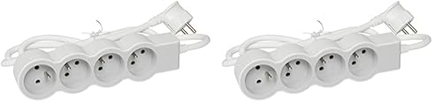 LEGRAND - Multiprise Extra-Plate - 4 Prises de Courant avec Terre - avec Cordon 3 m - Blanc et Gris Clair (Lot de 2)