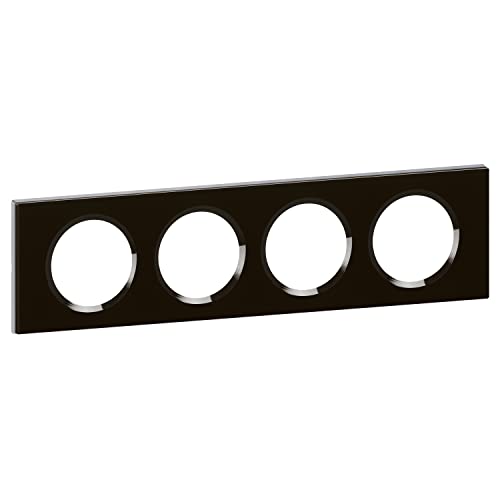 LEGRAND - Plaque Céliane - Plaque de Finition pour Prises et Interrupteurs Céliane - 4 postes - Verre Onyx noir