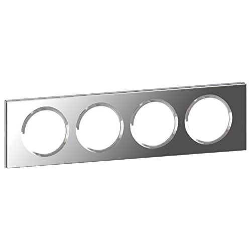LEGRAND - Plaque Céliane - Plaque de Finition pour Prises et Interrupteurs Céliane - 4 postes - Alu satiné
