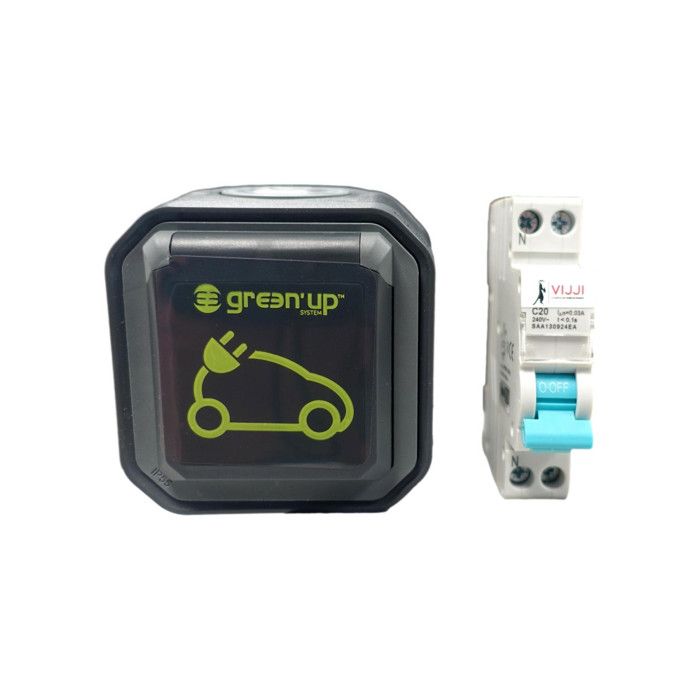 Borne monophasée plastique avec protection DC Green'up Premium pour 1 véhicule électrique Modes 2 et 3-3,7kW à 4,6kW 16A à 20A