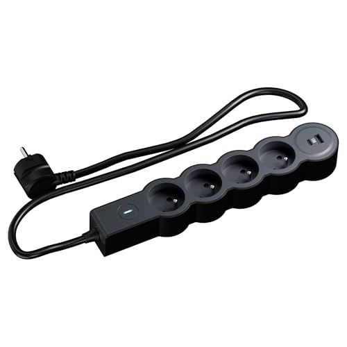 LEGRAND | Rallonge multiprise, Noir, 3x2P+T et 2 ports usb type-A et type-C 15W, avec interrupteur lumineux on/off discret, 1,5 M
