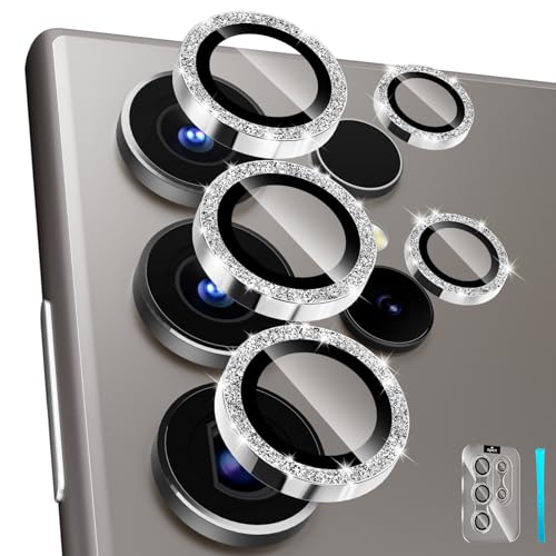 CloudValley for Samsung Galaxy S24 Ultra Camera Lens Protector, 9H Tempered Glass & Ultra-Thin Aluminum Alloy Individual Lens Screen Protective Cover for S24 Ultra 5G 2024, Glitter