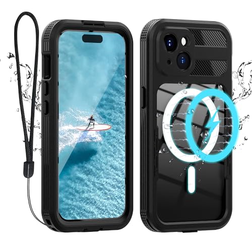 QIFJNZO pour iPhone 15 Pro 5G Phone Case 6.1 inch,IP68 Waterproof, Compatible avec Magsafe,Camera/Lens/Screen Protector,with Lanyard,Military Rugged Full Body Protective iPhone 15 Pro Cover Fundas