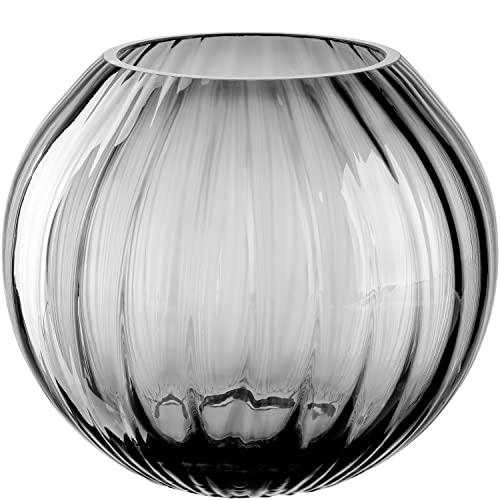 Leonardo Milano 041660 Vase en verre teinté gris, fabriqué à la main, au design moderne, hauteur : 13 cm, largeur : 18 cm