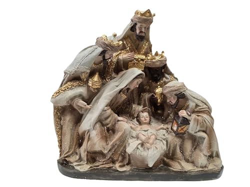 Mystère Naissance 1 pièce avec Rois dans Les Tons Marron et doré 29 x 27 x 11,5 cm