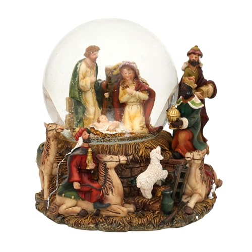 Boule à Neige - La Sainte Famille et Les Trois Rois - Boule 14 x 13 x 15,5 cm/Ø 10 cm - avec mécanisme - Mélodie - Nuit silencieuse