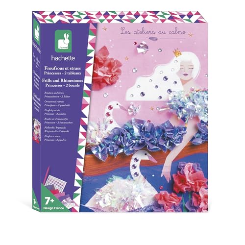 Janod - Kit Créatif Froufrous et Strass Princesses - 2 Tableaux à Décorer avec Tissus et Strass - Les Ateliers du Calme - Kit Créatif Enfant Dès 6 Ans