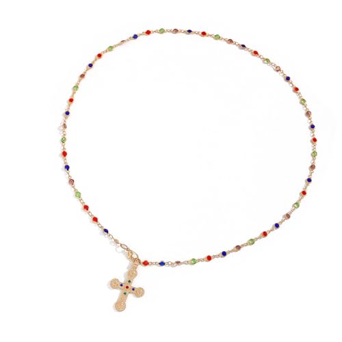 Asukohu Collier exquis avec pendentif en forme de croix complexe, collier élégant mettant en évidence des croix colorées en oxyde de zirconium pour les fêtes, les demoiselles d'honneur, taille unique