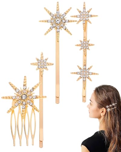 AORHOFJ Bijoux Femme,Strass Cheveux,4 Pièces Pinces à Cheveux Strass, Épingle à Cheveux de Mariage,Pinces à Cheveux en Métal pour Les Mariées Demoiselles d'honneur Femmes Filles,Style bohème(Or)