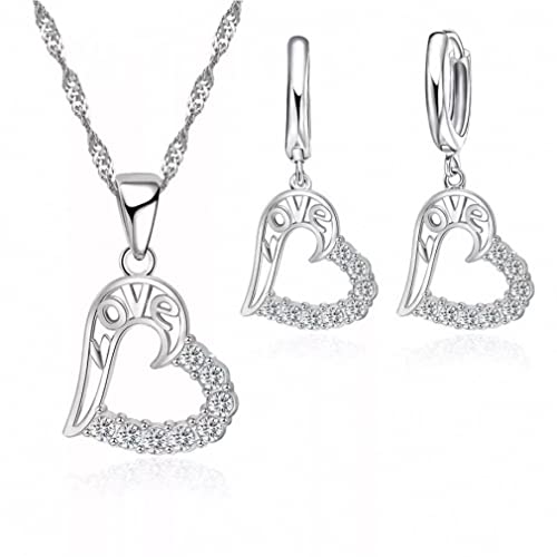 LMRJHAZ 925 pendentifs Colliers Boucles d'oreilles Ensemble de cristal de cristal blanc embelli pour les femmes demoiselles d'honneur femme
