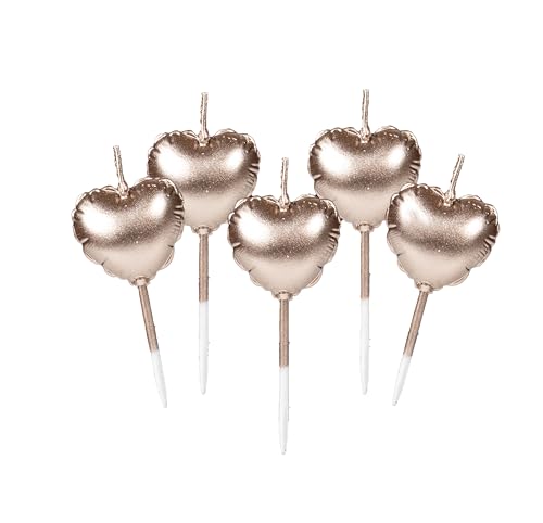 Decocino Amira Lot de 5 bougies en forme de cœur or rose – Idéal pour tous les gâteaux, gâteaux ou muffins, fête des mères, cadeau, cœur, décoration, bougie d'anniversaire, décoration