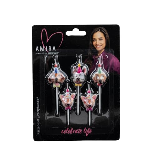 DECOCINO Meets Amira - Lot de 5 bougies pour chiens de fête - Un must pour tous les fans de chiens - Bougies avec de superbes motifs - Idéal pour tous les gâteaux, gâteaux ou muffins - Décoration de