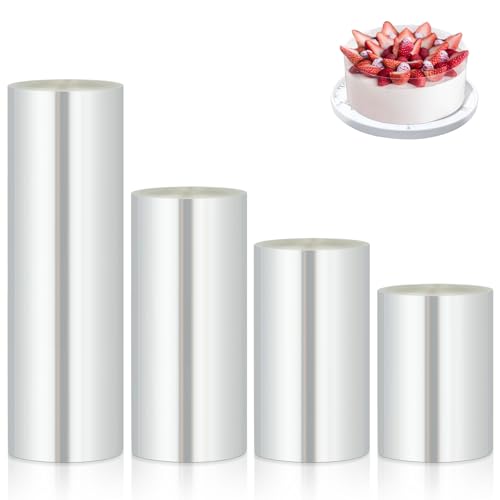AiQInu Rodoide Transparent Patisserie 4 Rouleaux, Rhodoid Patisserie 6cm/8cm/10cm/15cmx10m, Rhodoïde Feuille, Patisserie Film Bordure Gâteau Réutilisable en Acétate pour Entourer Les Gâteaux
