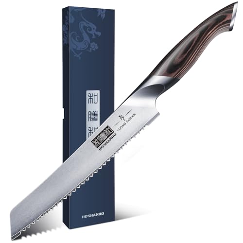 HOSHANHO Couteau à Pain, Couteau de Cuisine à Lame Dentelée, Acier Inoxydable, Couteau Pain pour Couper Les Pains, Gâteaux