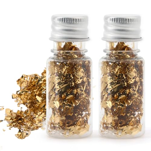 2 Bouteilles de Feuilles d'or Comestibles, Feuilles d'or Multifonctionnelles Pour Les Gâteaux Alimentaires, Les décorations DIY, Les Décorations de Crème Glacée