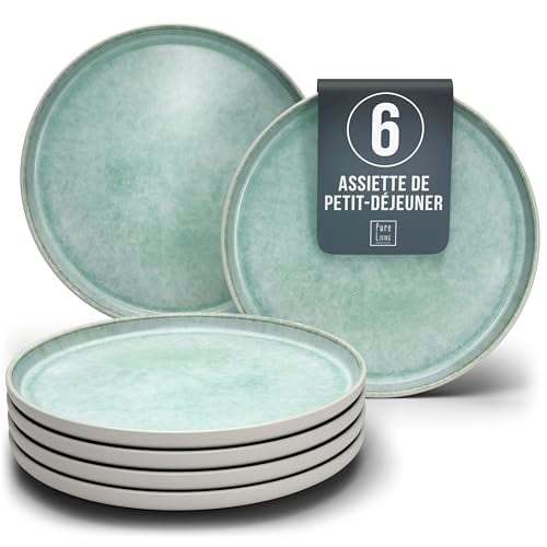 Set d'assiettes Ibiza - 6 pièces en grès, résistantes au lave-vaisselle et micro-ondes, parfait pour les gâteaux et les desserts
