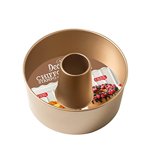 DECORA, 0070109 Moule Gold Line Chiffon Cake Ø 20,5 x 10 cm, Idéal pour préparer Chiffon Cake, Moule avec Base Plate Amovible pour Les gâteaux Classiques en Forme de Fleur, Métal antiadhésif Robuste