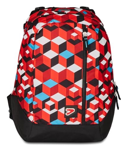 Seven Sac à Dos, Crunk Sac à Dos, Sac à Livres, pour Adolescents, Filles et Garçons, Grande Capacité, pour L'École, le Sport, les Loisirs, Double Face, design Italien, Rouge