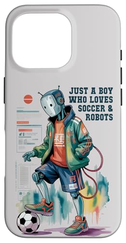 Joli garçon Qui Aime Le Football et Les Robots, Jeu animé de robotique Coque pour iPhone 16 Pro