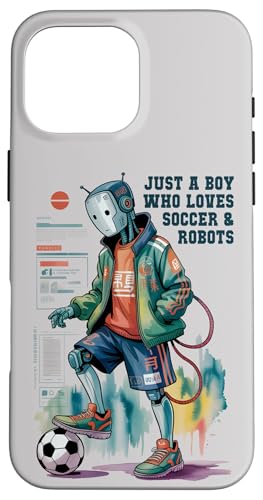 Joli garçon Qui Aime Le Football et Les Robots, Jeu animé de robotique Coque pour iPhone 16 Pro Max