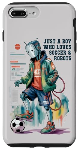 Joli garçon Qui Aime Le Football et Les Robots, Jeu animé de robotique Coque pour iPhone 7 Plus/8 Plus