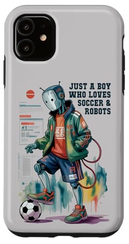 Joli garçon Qui Aime Le Football et Les Robots, Jeu animé de robotique Coque pour iPhone 11