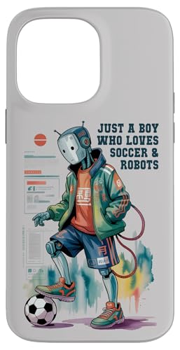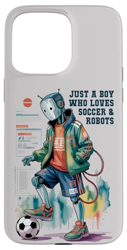 Joli garçon Qui Aime Le Football et Les Robots, Jeu animé de robotique Coque pour iPhone 15 Pro Max