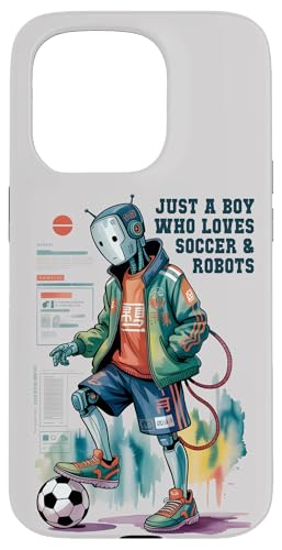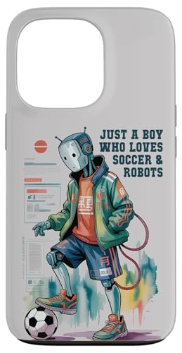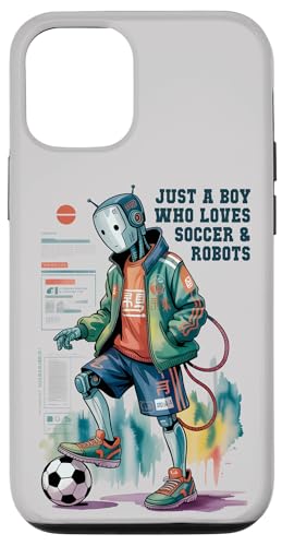 Joli garçon Qui Aime Le Football et Les Robots, Jeu animé de robotique Coque pour iPhone 13 Pro