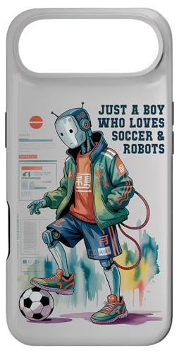 Joli garçon Qui Aime Le Football et Les Robots, Jeu animé de robotique Coque pour iPhone 17