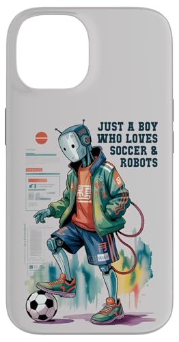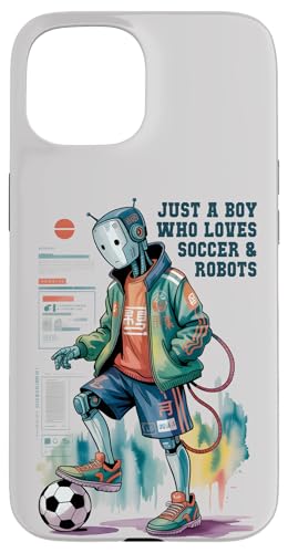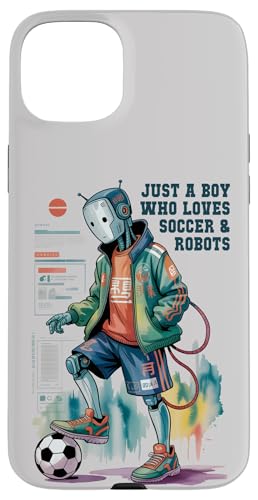 Joli garçon Qui Aime Le Football et Les Robots, Jeu animé de robotique Coque pour iPhone 15 Plus