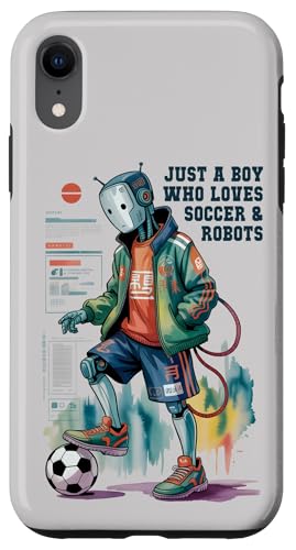 Joli garçon Qui Aime Le Football et Les Robots, Jeu animé de robotique Coque pour iPhone XR