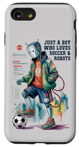 Joli garçon Qui Aime Le Football et Les Robots, Jeu animé de robotique Coque pour iPhone SE (2020) / 7/8