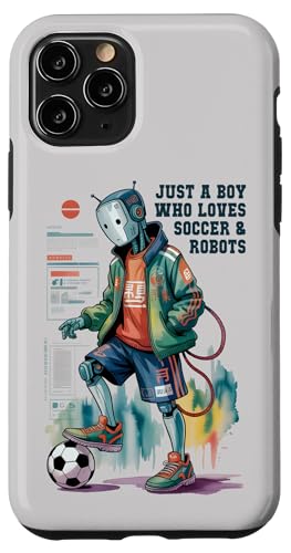 Joli garçon Qui Aime Le Football et Les Robots, Jeu animé de robotique Coque pour iPhone 11 Pro