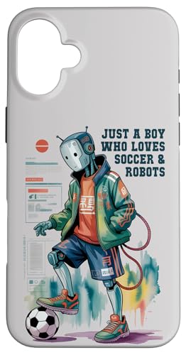 Joli garçon Qui Aime Le Football et Les Robots, Jeu animé de robotique Coque pour iPhone 16 Plus