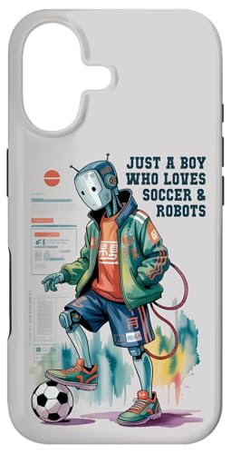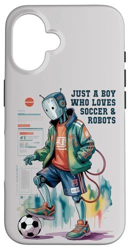 Joli garçon Qui Aime Le Football et Les Robots, Jeu animé de robotique Coque pour iPhone 16