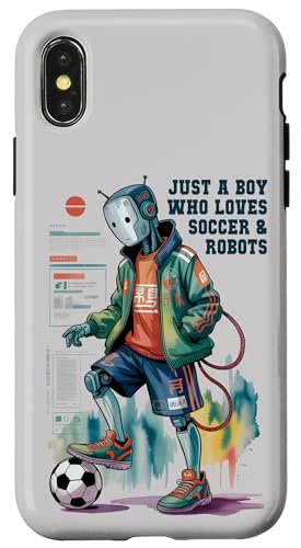 Joli garçon Qui Aime Le Football et Les Robots, Jeu animé de robotique Coque pour iPhone X/XS