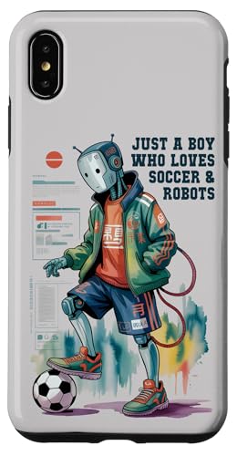 Joli garçon Qui Aime Le Football et Les Robots, Jeu animé de robotique Coque pour iPhone XS Max