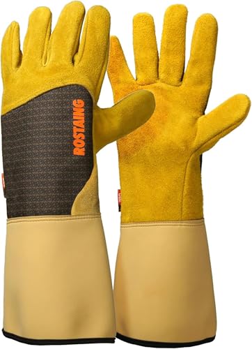 ROSTAING Gants RONCIER - Paire de Gants de Jardinage - Protection Cuir - Gants de Jardinage pour les Épines et Ronces et Gants de Travail, Beige