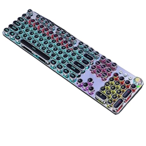 GRwzuPUEG Clavier Compatible avec TK100 104, Style Machine à écrire rétro, Panneau entièrement métallique, rétroéclairage LED, pour Le Bureau et Les Jeux(Blue Switch)
